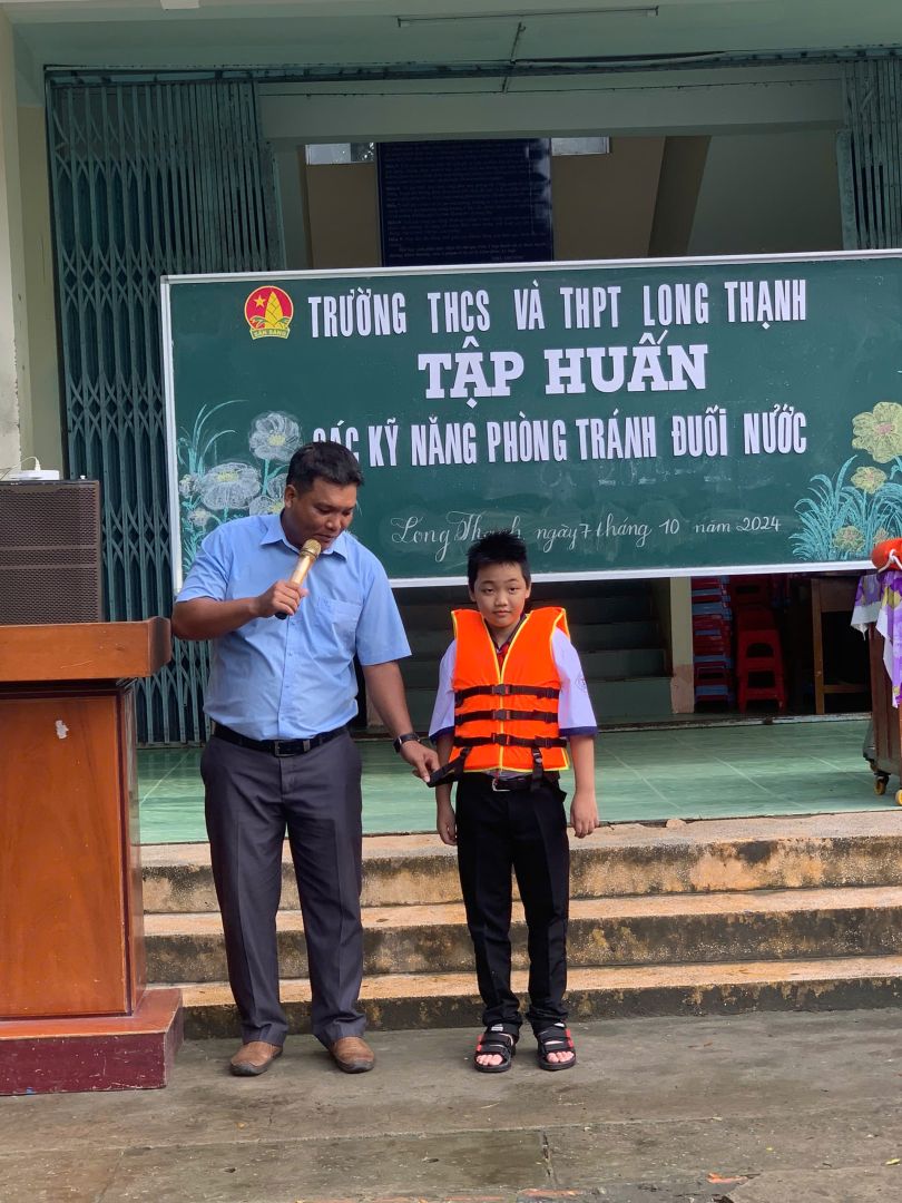 Sáng ngày 07/10/2024, Vào tiết chào cờ đầu tuần Đoàn, Hội, Đội Trường THCS và THPT Long Thạnh phối hợp với tổ Thể Dục tập huấn các kỹ năng phòng tránh đuối nước cho các em học sinh Khối THCS có khoảng hơn 900 em học sinh tham dự.