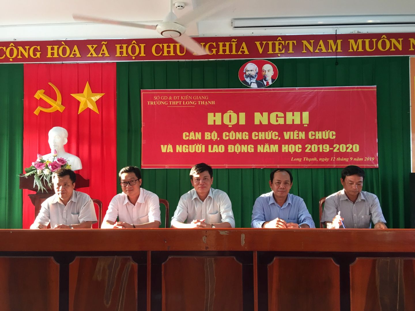 Ngày 12 tháng 9 năm 2019, Trường THPT Long Thạnh đã tổ chức Hội nghị CB,VC và NLĐ năm học 2019 - 2020. Hội nghị đã kiểm điểm nghị quyết Hội nghị năm học 2018 - 2019. Năm học vừa qua nhà trường đã thực hiện cơ bản hoàn thành các chỉ tiêu được giao. Chất lượng hai mặt của nhà trường vượt chỉ tiêu đề ra. Các hoạt động giáo dục toàn diện học sinh được quan tâm. Tỉ lệ tốt nghiệp THPT, THCS được giữ vững, tỉ lệ học sinh thi tốt nghiệp THPT Quốc gia có số điểm từ 18 trở lên tăng, tỉ lệ học sinh giỏi cấp huyện, cấp tỉnh từng bước nâng lên về chất lượng. Sáng ngày 5/9, Trường THPT Long Thạnh đã tổ chức Lễ khai giảng năm học mới 2019 - 2020. Tới dự và chia vui với thầy và trò nhà trường có các đồng chí: Ông Phan Thanh Hùng, Phó chủ tịch MTTQ Việt Nam tỉnh Kiên Giang; Ông Thiều Văn Nam, trưởng phòng Kế hoạch - Tài chính Sở Giáo dục; Bà Nguyễn Kim Nương, Ủy viên BCH Đảng bộ huyện, Phó chủ tịch UBND Huyện Giồng Riềng; đại diện các mạnh thường quân trong và ngoài huyện; lãnh đạo xã Long Thạnh, Ban đại diện cha mẹ học sinh, cùng toàn thể cán bộ giáo viên và hơn 1400 học sinh trong toàn trường.