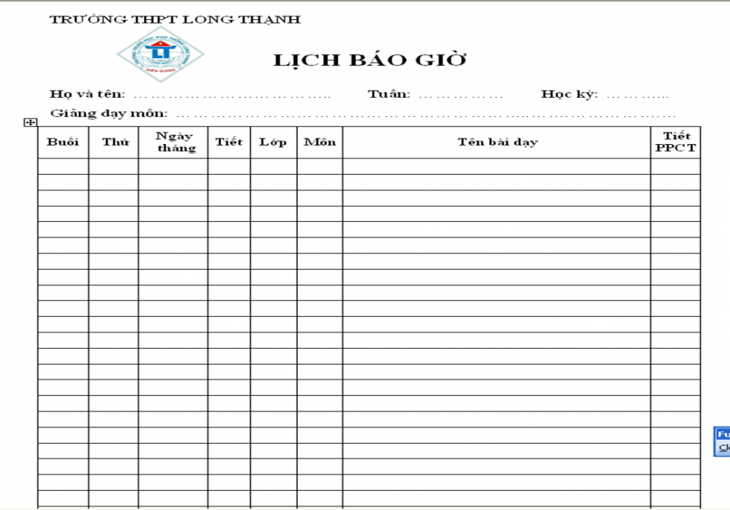 Quý Thầy cô in lịch báo giờ dùng mẫu sau đây để thống nhất trong hội đồng.