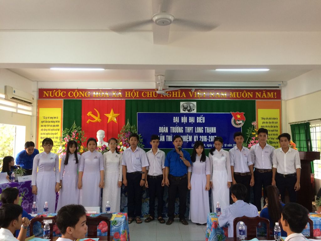 Ngày 05/10/2016, Đoàn trường THPT Long Thạnh đã tổ chức thành công Đại hội đại biểu Đoàn TNCS Hồ Chí Minh nhiệm kỳ năm học 2016-2017. Tới dự và chỉ đạo Đại hội có đồng chí Lý Thành Luân, Phó Bí thư Thường trực Huyện Đoàn; đồng chí Trần Đức Toàn, Phó Bí thư chi bộ, phó Hiệu trưởng nhà trường và 84 đoàn viên thanh niên ưu tú đại diện cho hơn 500 đoàn viên của nhà trường tới dự. Đại hội đã thông qua báo cáo tổng kết công tác Đoàn và phong trào thanh niên nhiệm kỳ 2015-2016 và dự thảo phương hướng nhiệm vụ công tác Đoàn và phong trào thanh niêm nhiệm kỳ 2016-2017. Đại hội đã tập trung thảo luận đóng góp ý kiến về các mục tiêu trong nhiệm kỳ mới như: Công tác giáo dục của Đoàn, xây dựng phong trào thi đua học tập nâng cao trình độ chuyên môn nghiệp vụ. Các đại biểu có nhiều ý kiến đóng góp hữu ích, mang tính thiết thực, những kinh nghiệm quý báu trong tổ chức hoạt động công tác Đoàn và phong trào thanh niên, góp phần đổi mới, nâng cao hiệu quả hoạt động của Ban chấp hành Đoàn trường để hoàn thiện bản phương hướng, đề ra mục tiêu, nhiệm vụ thực hiện trong nhiệm kỳ 2016-2017. Phát biểu chỉ đạo tại Đại hội đồng chí Lý Thành Luân thay mặt thường trực huyện Đoàn đã biểu dương và đánh giá cao những thành tích mà Đoàn trường THPT Long Thạnh đã đạt được, đồng thời cũng chỉ ra những nhiệm vụ quan trọng trong nhiệm kỳ tới mà BCH Đoàn trường cần tập trung triển khai thực hiện. “Trong nhiệm kỳ này, công tác Đoàn cần đổi mới phương thức hoạt động, tập trung vào công tác ở các chi đoàn cơ sở, xây dựng và tổ chức hoạt động tốt các câu lạc bộ học tập, tổ chức tập huấn kỹ năng công tác và kỹ năng mềm cho cán bộ Đoàn, đưa hoạt động Đoàn của nhà trường là nơi tin cậy của thanh thiếu niên trong nhà trường”, đồng chí Trần Đức Toàn, phó Bí thư chi bộ nhà trường phát biểu. Với tinh thần nghiêm túc, Đại hội đã sáng suốt lựa chọn ra những người có trình độ chuyên môn, có uy tín, năng động, sáng tạo, nhiệt tình và đặc biệt là có khả năng lãnh đạo công tác Đoàn và phong trào thanh niên trường học của nhà trường vào BCH nhiệm kỳ mới gồm 15 đồng chí, BCH Khóa mới đã họp phiên thứ nhất và bầu ra Ban thường vụ bao gồm 5 đồng chí trong đó đồng chí Hoàng Ngọc Long giữ chức vụ Bí thư, và bầu ra 02 phó Bí Thư.