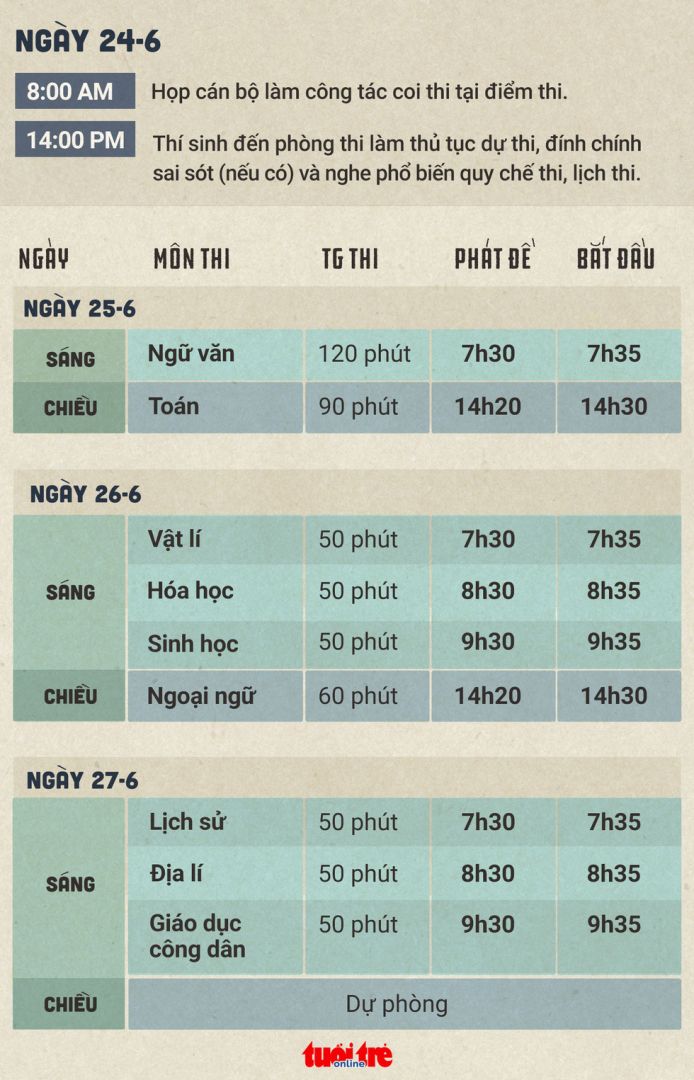 Ngoài ra, các đại học chủ trì tổ chức chấm bài thi trắc nghiệm tại hội đồng, quy định chặt chẽ hơn về phòng chấm và bảo quản bài thi, công tác kiểm tra giám sát được tăng cường. Lịch thi dự kiến năm nay trùng với lịch năm 2018. Chiều 24/6, thí sinh đến phòng làm thủ tục dự thi, đính chính sai sót thông tin đăng ký dự thi và nghe phổ biến quy chế, lịch thi. Ngày đầu tiên 25/6, thí sinh làm bài hai môn Văn, Toán. Ngày tiếp theo, các em làm bài Khoa học tự nhiên và Ngoại ngữ. Sáng 27/6, thí sinh thi nốt bài Khoa học xã hội.