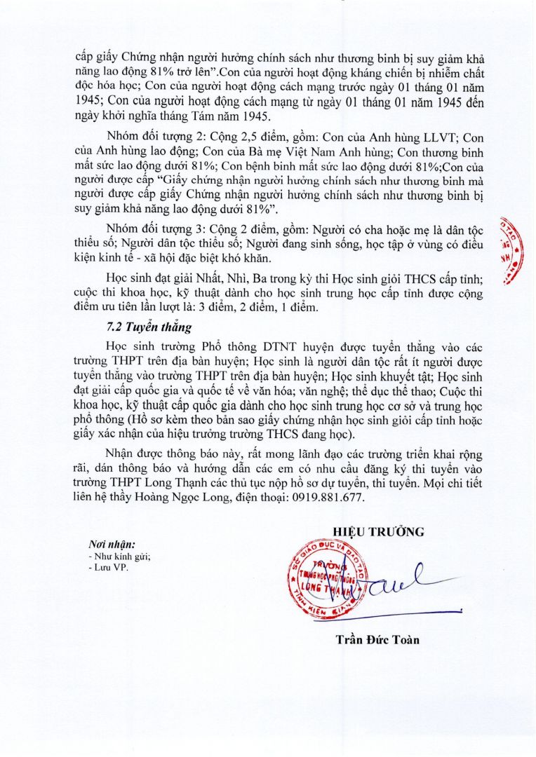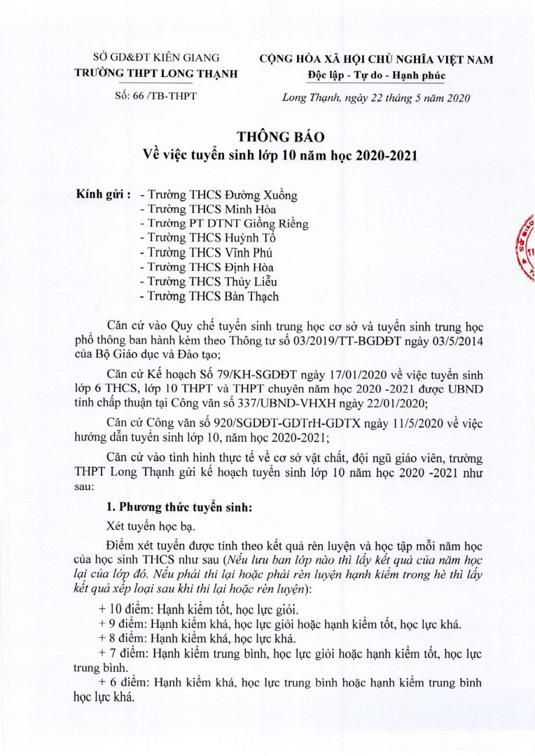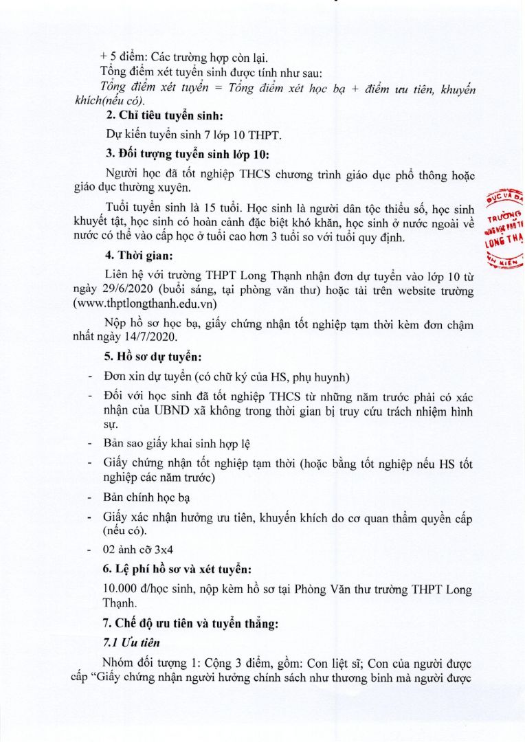 Trường THPT Long Thạnh: tổ chức kỳ thi tuyển sinh lớp 10 THPT năm học...(3