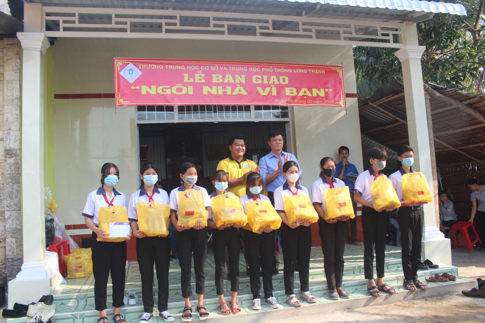 Sáng nay, Trường THCS-THPT Long Thạnh kết hợp Trung tâm Bảo trợ xã hội, trẻ em, Bình đẳng giới và tệ nạn xã hội (Sở LĐ&TBXH tỉnh), Trung tâm hoạt động thanh thiếu niên tỉnh Kiên Giang, Hội Khuyến học huyện Giồng Riềng, Phòng Lao động và Thương binh xã hội huyện Giồng Riềng đã tiến hành Lễ bàn giao nhà “NGÔI NHÀ VÌ BẠN” cho hai chị em Phan Thị Ngọc Ý và Phan Đại Hưng là học sinh của trường THCS-THPT Long Thạnh, gắn với buổi trao quà cho 30 học sinh có hoàn cảnh khó khăn của trường.