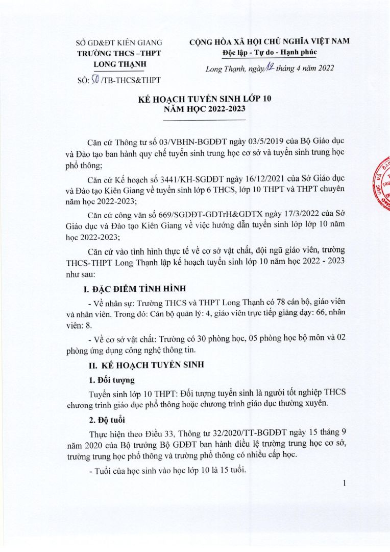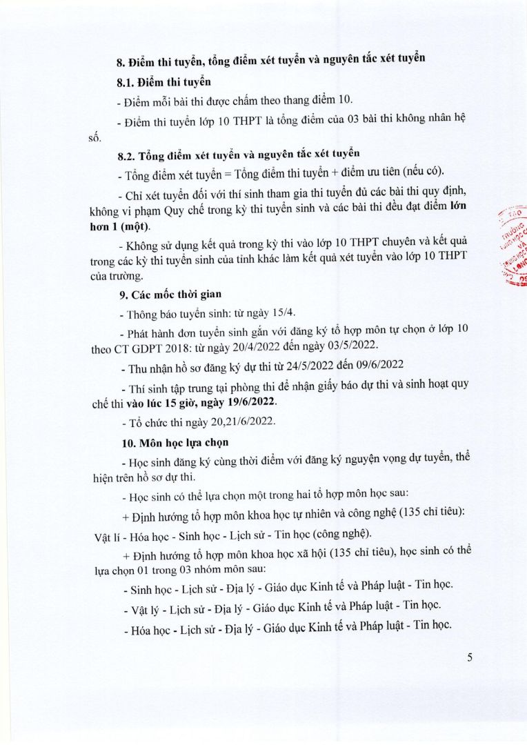 KẾ HOẠCH TUYỂN SINH LỚP 10 NĂM HỌC 2022-2023
