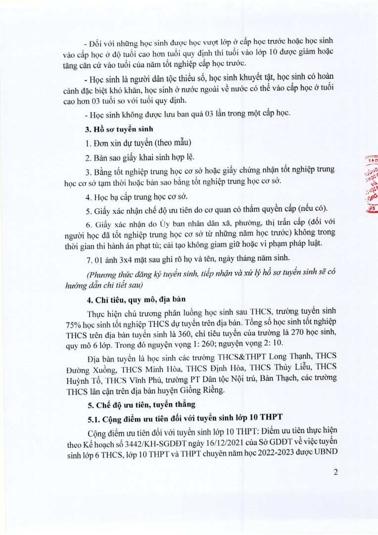 Trường THPT Long Thạnh: tổ chức kỳ thi tuyển sinh lớp 10 THPT năm học...(3