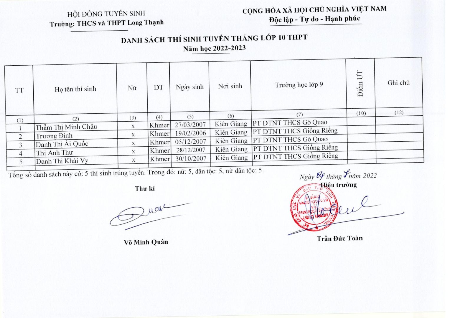 Trường THPT Long Thạnh: tổ chức kỳ thi tuyển sinh lớp 10 THPT năm học...(3