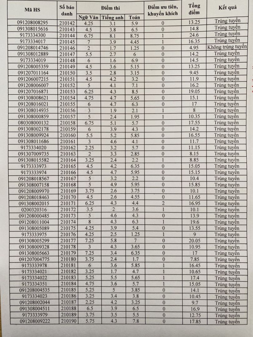 KẾT QUẢ TRÚNG TUYỂN NGUYỆN VỌNG 1 LỚP 10 NĂM HỌC 2023-2024