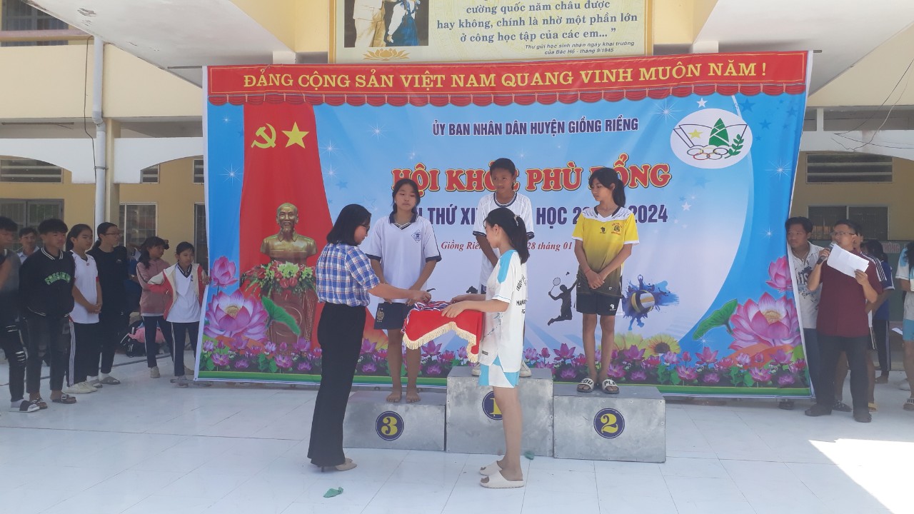 Hội khỏe phù đổng Hội khỏe Phù Đổng huyện Giồng Riềng lần thứ XIX năm học 2023-2024 diễn ra trong 02 ngày 27-28/01/2024, với sự tham gia của hơn 1200 vận động viên của hơn 40 đoàn đến từ các trường Tiểu học, Tiểu học và Trung học cơ sở, Trung học cơ sở, Trung học cơ sở và Trung học phổ thông trong toàn huyện.