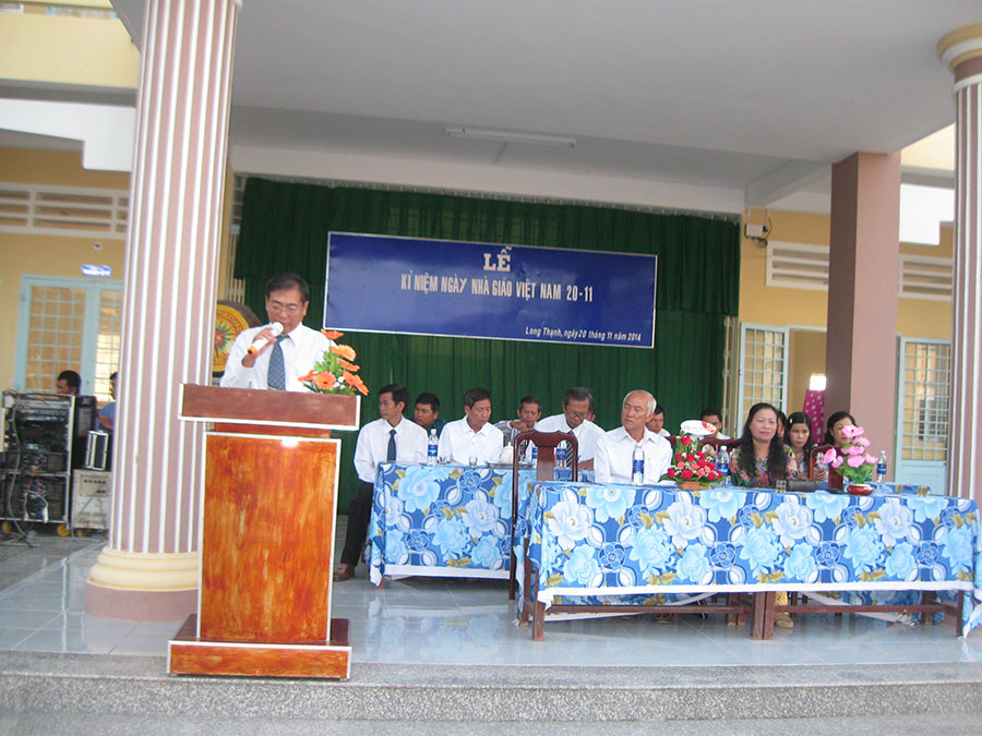 1. Thầy hiệu trưởng Lê Văn Mau phát biểu trong buổi lễ.