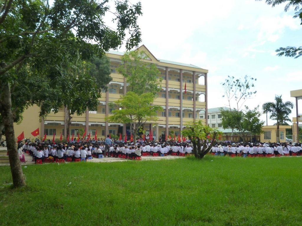 ![]() Tổng diện tích của trường là 15.886,22m2 gồm: Khuôn viên trường THPT: 9.024,53 m2; Khuôn viên trường THCS: 5.073,45 m2; Khuôn viên điểm trường Cây Bàng: 1.002,34 m2; Khu tập thể giáo viên 10 căn hộ: 785,90 m2. Trường có tường rào; xung quanh sân trường có cây xanh bóng mát; trường được công nhận “Xanh, sạch, đẹp” mức độ cao từ năm 2007 cho đến nay. Sân chơi THPT là 8.372 m2, bình quân 13 m2/học sinh, bãi tập thể dục, QPAN trong sân trường. ![]() Nhà trường có tổng số 03 khu riêng biệt: gồm 39 phòng học; 02 phòng học tin học; 01 phòng học ngoại ngữ; 03 phòng thực hành: ( Lý, Hóa, Sinh); 02 phòng Hội đồng giáo viên; 01 phòng truyền thống; 02 phòng thư viện; 01 phòng y tế; 01 phòng đoàn TNCSHCM; 01 phòng máy chiếu; 04 phòng làm việc của Hiệu trưởng (1); P.hiệu trưởng (3). Một số hình ảnh khác: ![]() Phòng tin học có đầy đủ máy tính cho học sinh thực hành, có kết nối internet