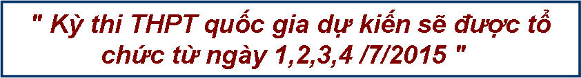 > Hôị nghị triển khai nhiệm vụ Giáo dục trung học, Giáo dục thường xuyên năm... > Thủ tướng Nguyễn Tấn Dũng: Việc tổ chức một kỳ thi được sự đồng thuận... > Thư của Chủ tịch nước nhân dịp khai giảng Năm học mới > Bộ GD-ĐT chốt phương án một kỳ thi quốc gia > Thi cụm địa phương vẫn có cửa vào ĐH Gửi ý kiến nhận xét về bài viết: thông báo