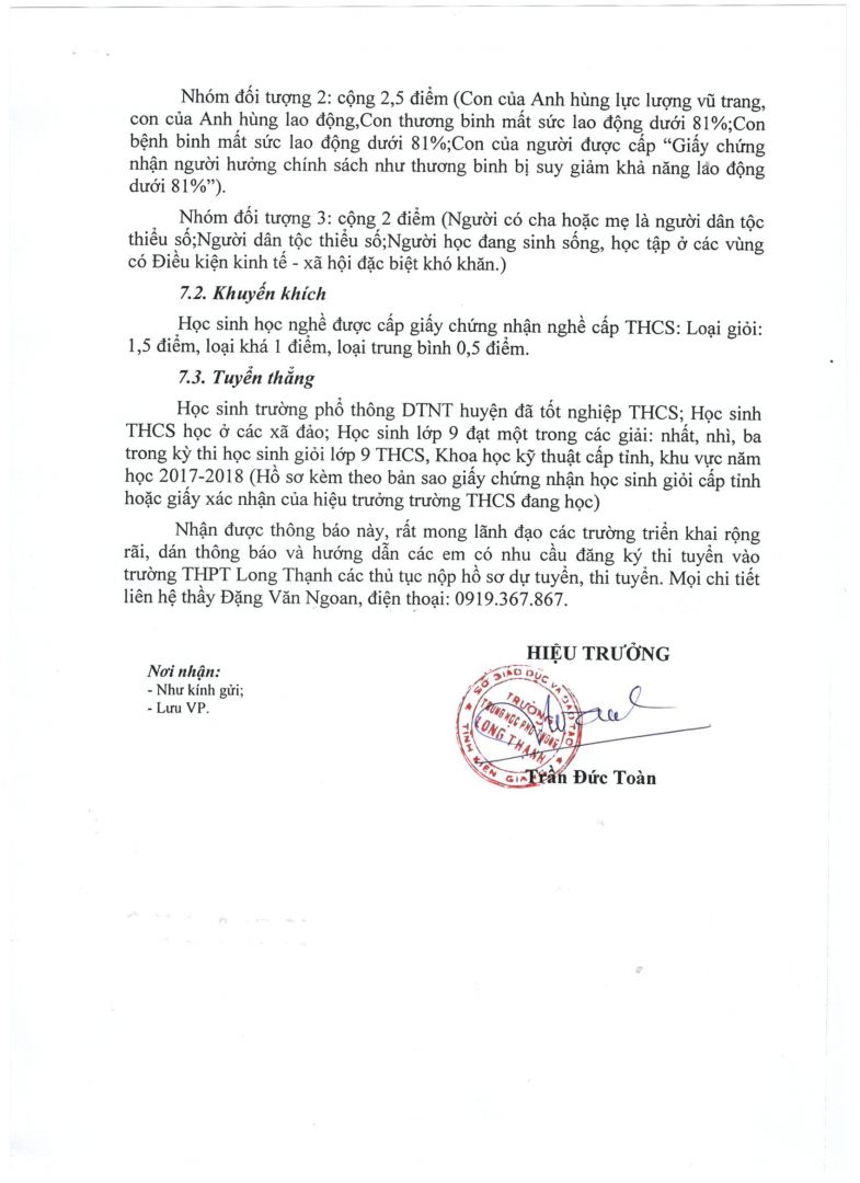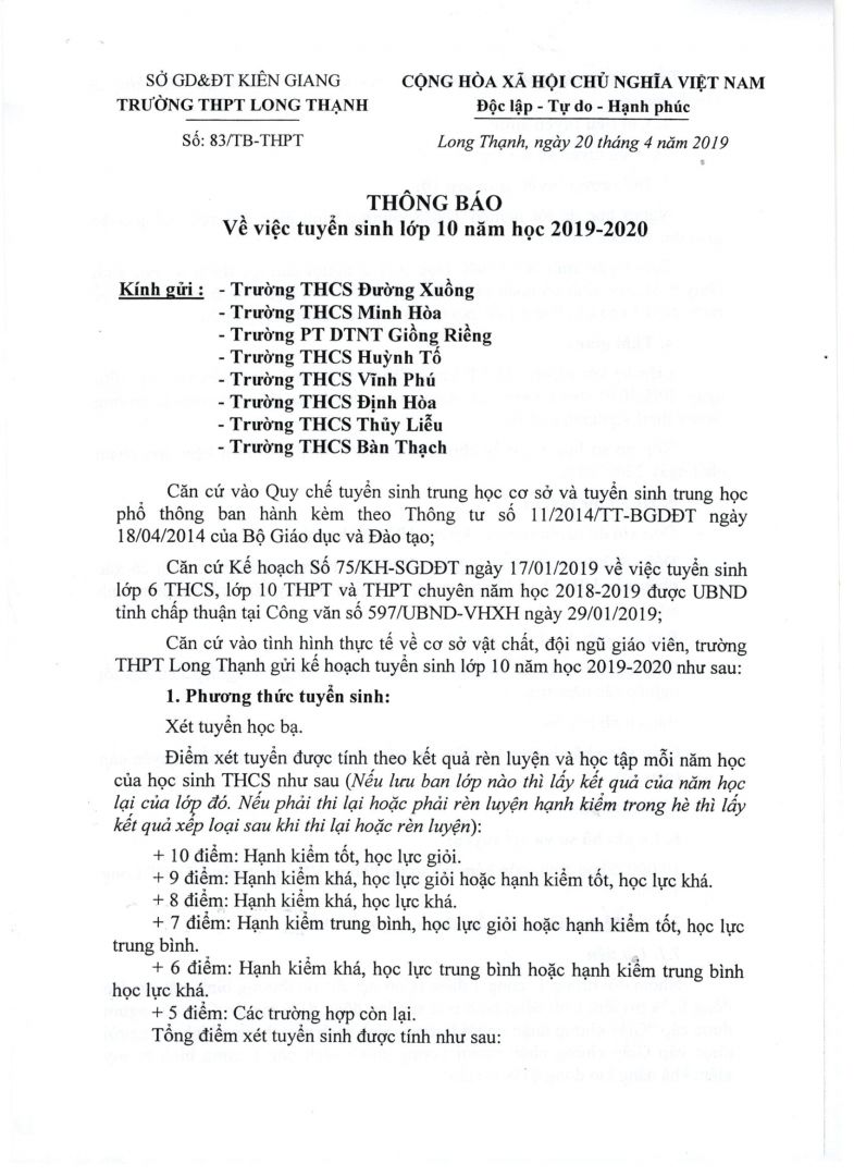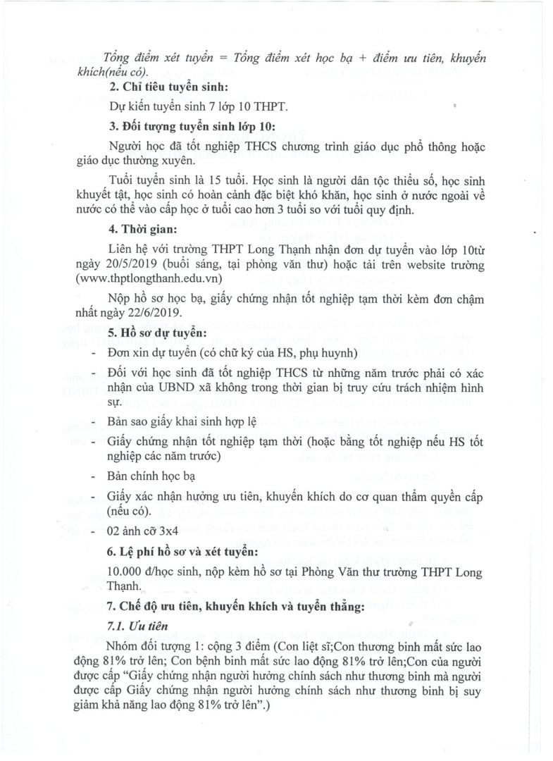 Trường THPT Long Thạnh: tổ chức kỳ thi tuyển sinh lớp 10 THPT năm học...(3