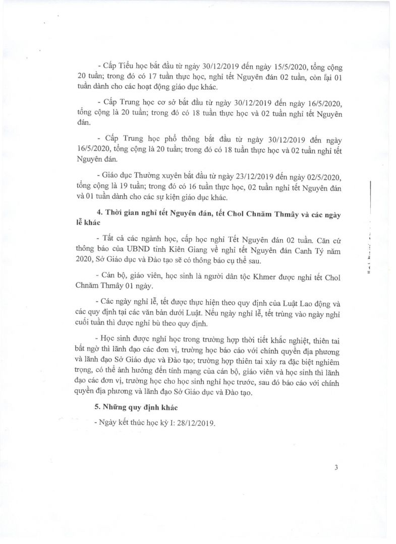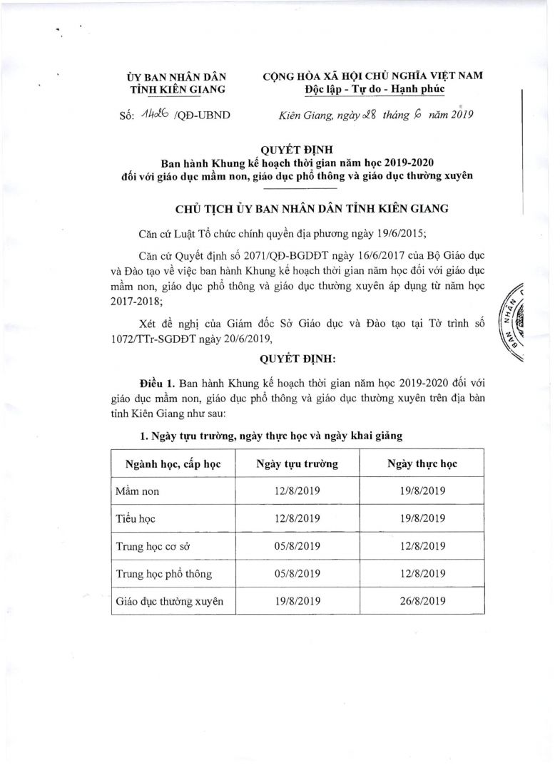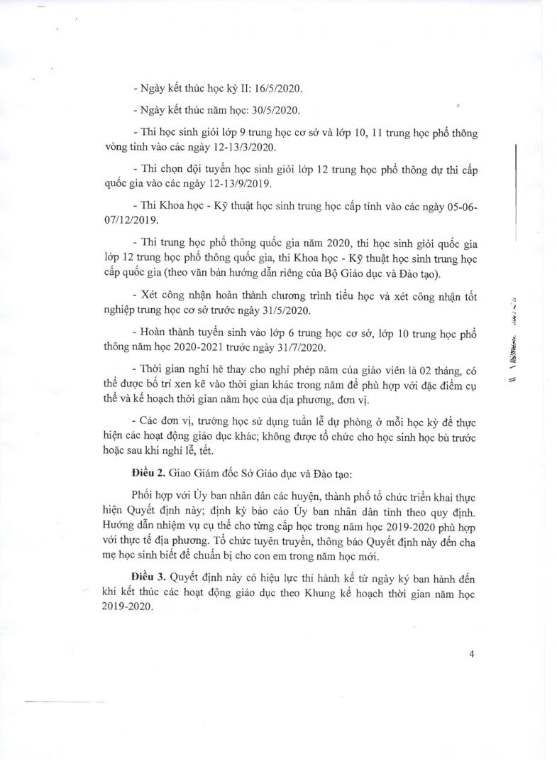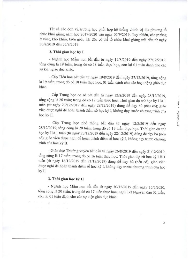Khung kế hoạch thời gian năm học 2019 - 2020 đối với giáo dục mầm non, giáo dục phồ thông và giáo dục thường xuyên.