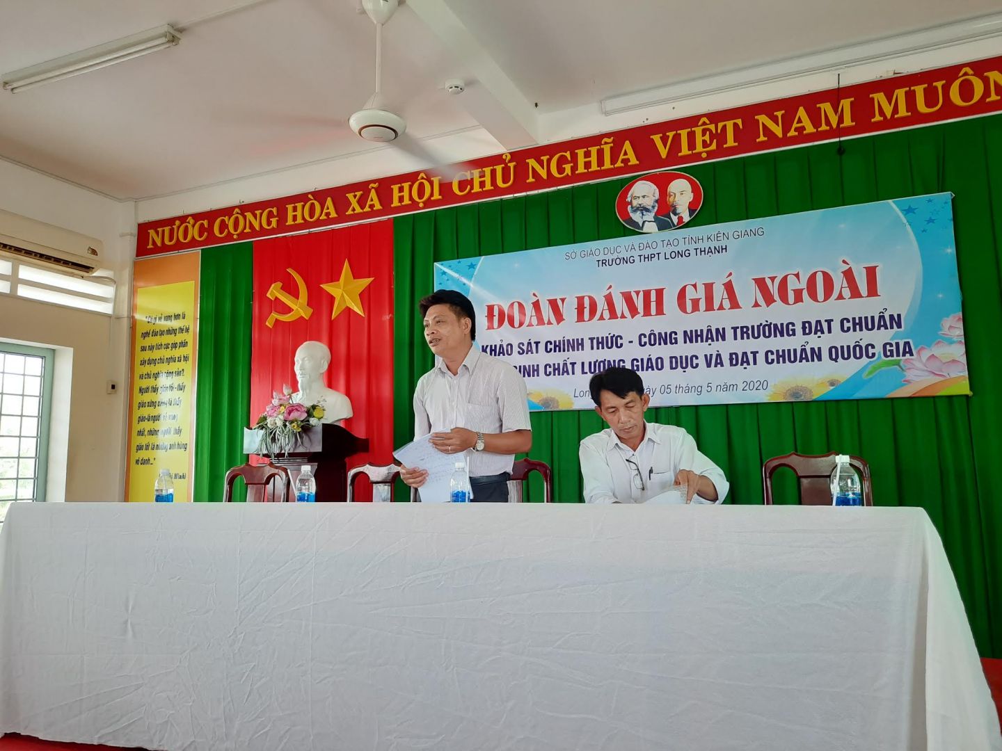 Thực hiện Quyết định số 203/QĐ-SGDĐT ngày 19/3/2020 của Giám đốc sở Giáo dục và Đào tạo Kiên Giang về việc thành lập Đoàn đánh giá ngoài công nhận đạt kiểm định chất lượng giáo dục và đạt chuẩn quốc gia tại trường THPT Long Thạnh huyện Giồng Riềng tỉnh Kiên Giang từ ngày 05 đến 06/5/2020. Đoàn đánh giá ngoài do ông Nguyễn Thanh Tâm, Trưởng phòng Khảo thí và Quản lí chất lượng giáo dục làm Trưởng Đoàn cùng 8 thành viên đã tiến hành đợt khảo sát chính thức nhà trường.