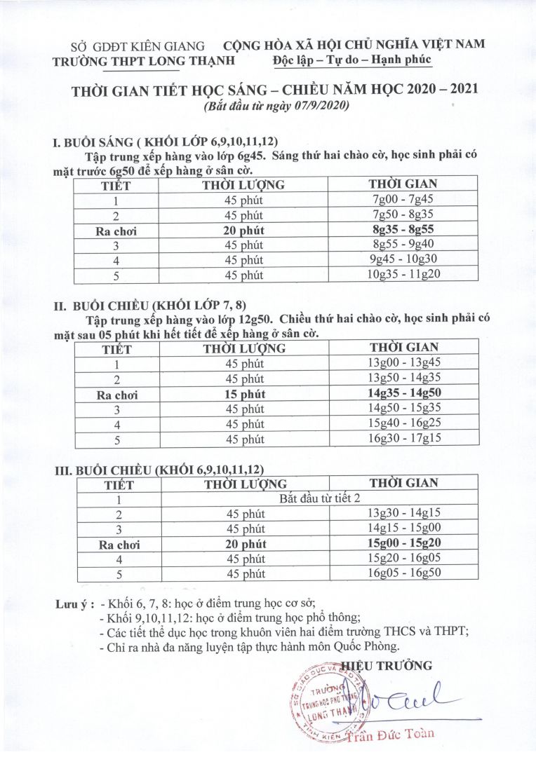 Mời quý thầy cô, phụ huynh và các em học sinh theo dõi lịch học sáng - chiều các khối trong học kỳ I năm học 2020 - 2021 (bắt đầu từ ngày 07/9/2020).