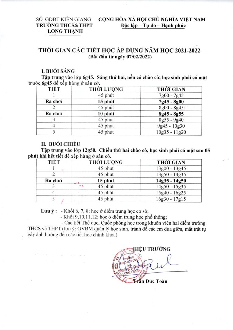 Thực hiện chương trình dạy học khối 7,8,9,10,11,12 và học sinh khối 6 học trực tuyến của Trường THCS&THPT Long Thạnh từ ngày 07/02/2022. Ban quản trị giới thiệu thời gian học và thời khóa biểu đến quý Cha mẹ học sinh, quý Thầy Cô và các em học sinh của trường tiện theo dõi.