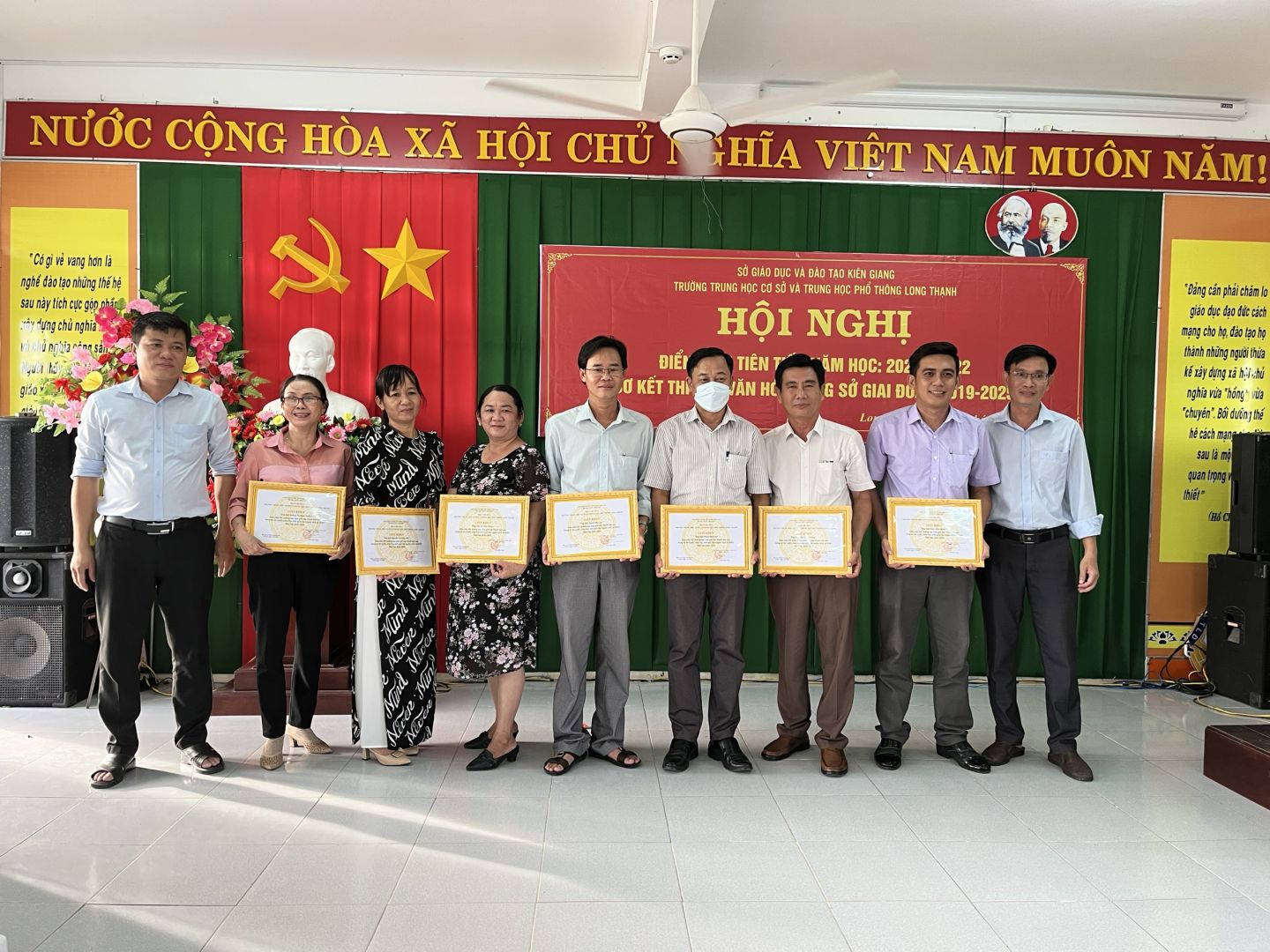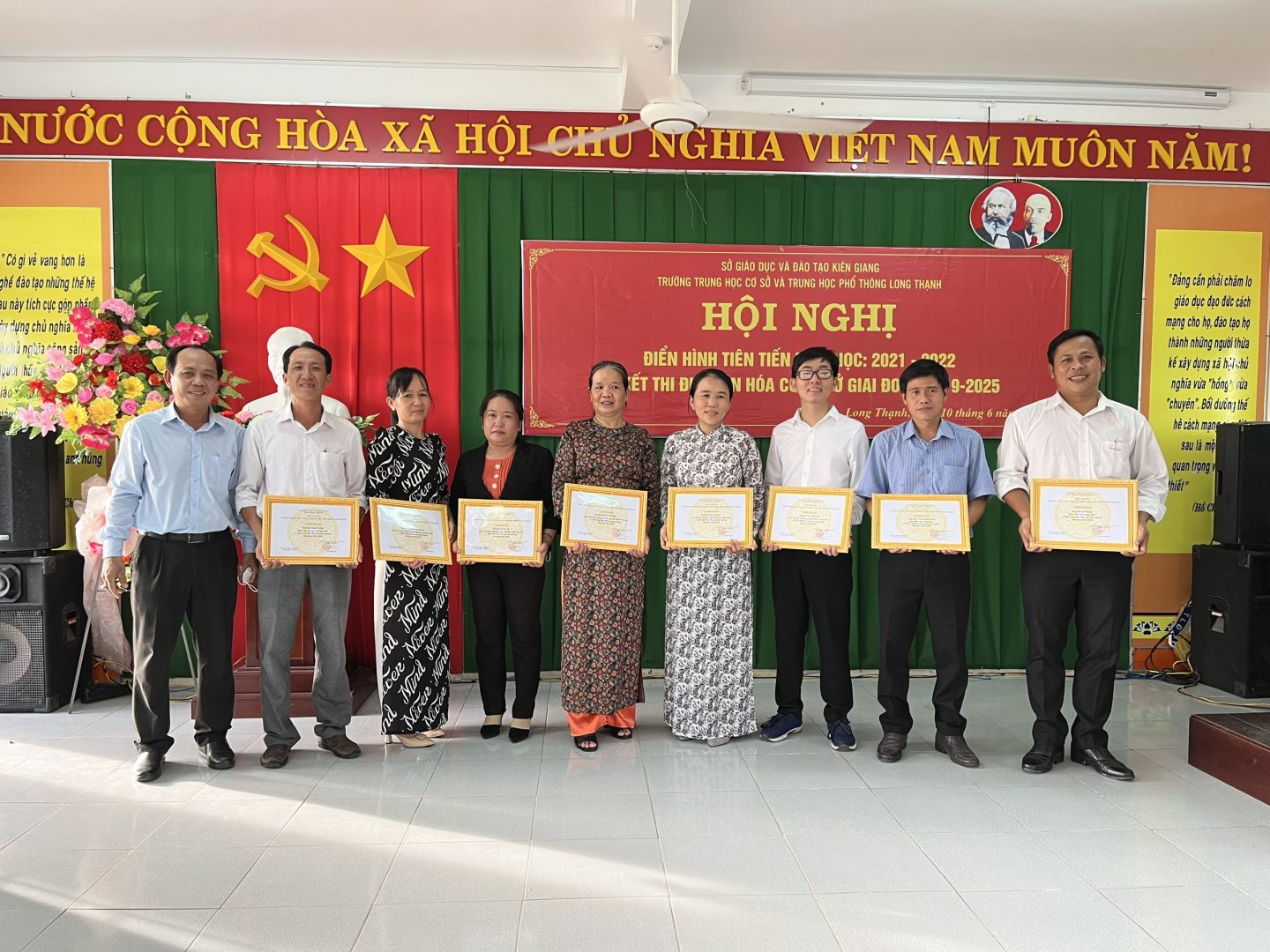 Trong năm học qua, mặc dù điều kiện dịch bệnh diễn ra hết sức phức tạp nhưng với tinh thần đoàn kết, tập thể trường THCS và THPT Long Thạnh đã cố gắng, nổ lực hoàn thành tốt nhiệm vụ năm học. Qua đó đã xuất hiện nhiều gương điển hình như Thầy Đặng Văn Ngoan Phó Hiệu trưởng nhà trường có nhiều đổi mới trong quản lý; Thầy Trương Thanh Toàn Em và Cô Trương Thị Hồng Trang là những giáo viên dạy giỏi cấp tỉnh; hoặc thầy Hoàng Ngọc Long, Trần Vĩnh Hoàng, Thầy Trương Tấn Tài, thầy Quách Văn Lạc, Cô Hoàng Thị Ngọc Tuyền, Thầy Hồ Thanh Sang, Cô Lê Kim Kỷ, Thầy Hoàng Văn Thuật, Cô Lê Thùy Trang, Cô Nguyễn Thị Hằng, ... là những giáo viên đạt nhiều thành tích trong phong trào ôn thi học sinh giỏi các cấp trong năm học qua; Cô Nguyễn Thị Diệu Vân, Cô Châu Thị Ngọc Vân, Cô Huỳnh Thị Mỹ Xuyến, Thầy Huỳnh Văn Sơn, Em Hoàng Thanh Hà, Chị Đặng Ngọc Mai, ... . ![]() Bên cạnh đó, tại Hội nghị cũng đã trao khen thưởng cho 10 cá nhân đã có nhiều thành tích trong phong trào thi đua "cán bộ, công chức, viên chức thực hiện tốt văn hóa công sở" giai đoạn 2019-2025 như Thầy Danh Thành, Cô Hồ Mỹ Thơm, Cô Huỳnh Thị Mỹ Xuyến, Thầy Trần Vĩnh Hoàng, Cô Nguyễn Thị Diệu Vân, Cô Lê Kim Kỷ, Thầy Lý Minh Đang, Thầy Lê Đình Dũng, Thầy Đặng Văn Ngoan và Chị Lý Chúc Phương. Đây là những cán bộ, công chức, viên chức gương mẫu, tận tụy, chuẩn mực, kỷ cương, tận tình, thân thiện, từ đó tạo môi trường làm việc trong nhà trường ngày một văn minh, hiện đại, minh bạch và hiệu quả. ![]() Ngoài ra còn rất nhiều thầy cô khác, mặc dù không được nêu tên ở đây nhưng ngày đêm đã nổ lực âm thầm đóng góp tích cực trong công tác dạy và học của nhà trường. Trân quý những tấm lòng của mỗi Thầy Cô, Anh Chị Em, chính sự đóng góp ấy đã làm nên sự phát triển của nhà trường như hôm nay./. Trần Đức Toàn Trường THCS và THPT Long Thạnh