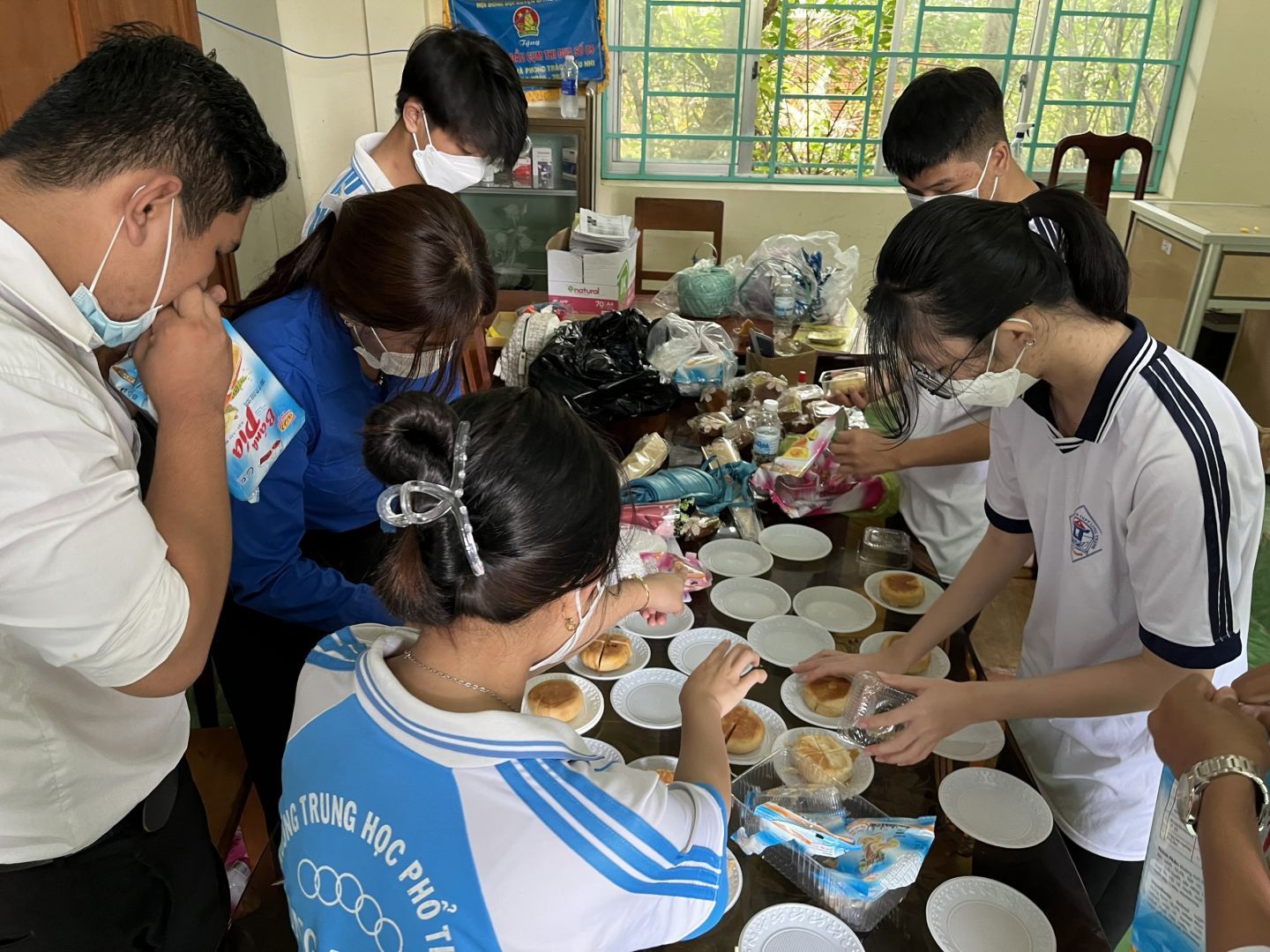 Ngay ngày hội trăng rằm Đội TNTP của trường cũng đã trao quà, bánh của các anh chị khối THPT cho các em nghèo, khó khăn được vui tết trung thu cùng các bạn.