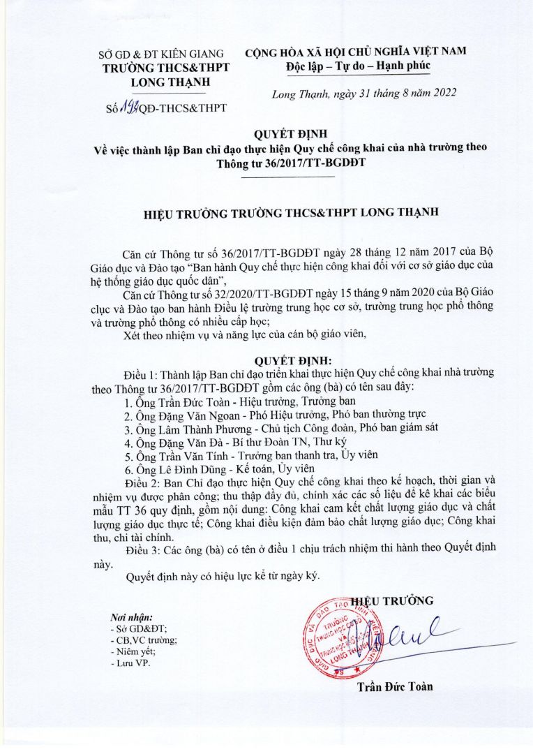 Trường THPT Long Thạnh: tổ chức kỳ thi tuyển sinh lớp 10 THPT năm học...(3