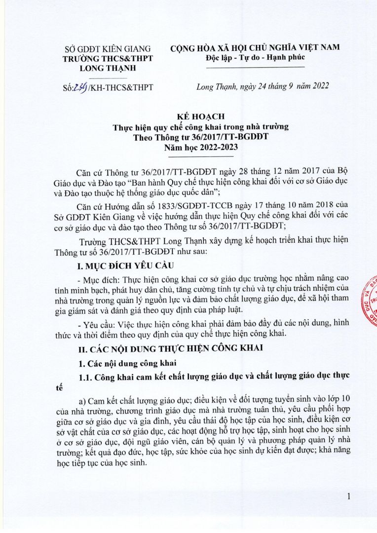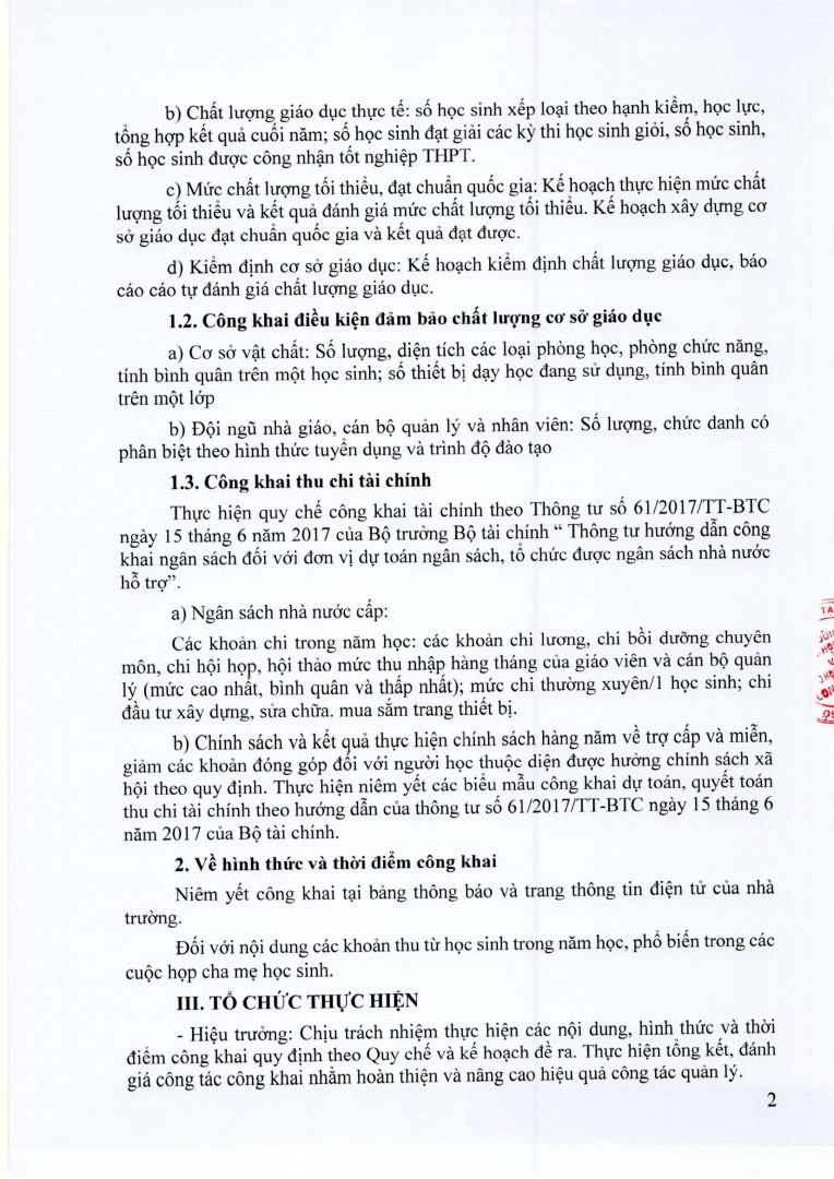 CÔNG KHAI CÁC NỘI DUNG THEO THÔNG TƯ 36/2017/TT-BGDĐT NGÀY 28/12/2017 NĂM HỌC 2022-2023