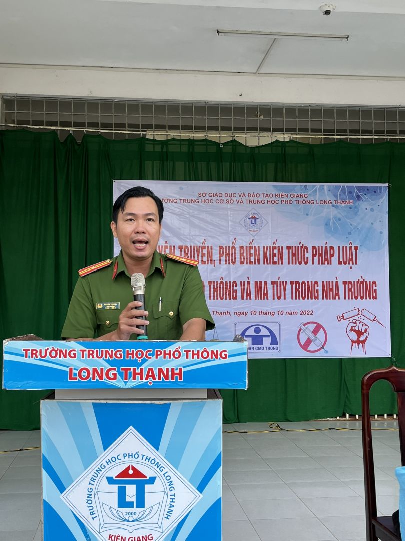 Sáng ngày 10/10/2022 trường THCS và THPT Long Thạnh phối hợp với Đội xây dựng phong trào công an huyện Giồng Riềng tổ chức buổi tuyên truyền phòng chống ma túy, đảm bảo an toàn giao thông và an ninh trật tự trường học.