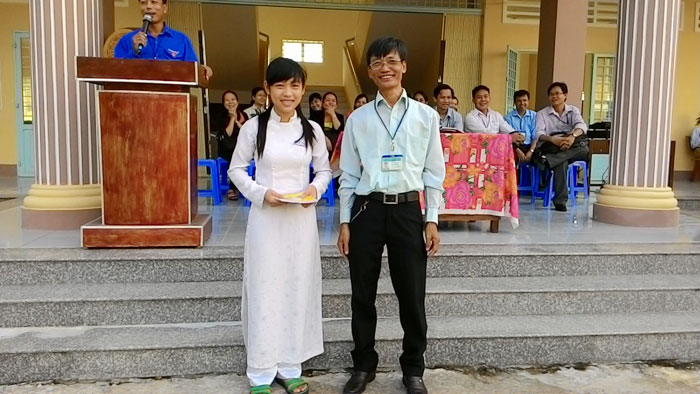 Sau đây là một số hình ảnh các em học sinh nhận thưởng từ thầy Thủy trao tặng![]()